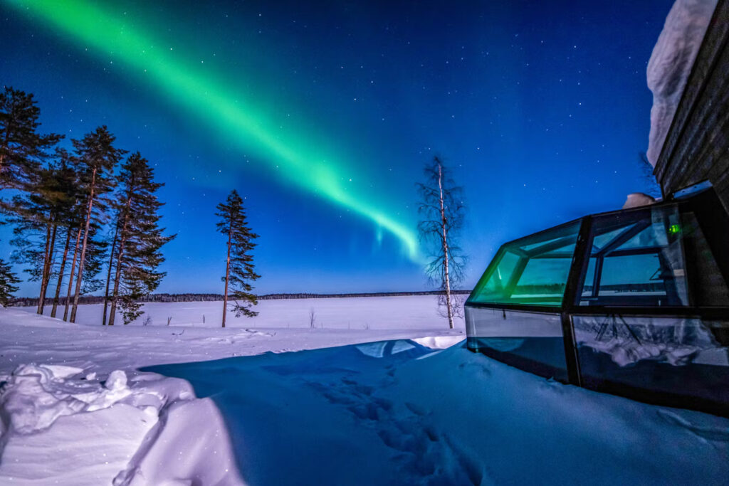 - Optional upgrades: Snowmobile rides, Ice fishing, Aurora Igloo stays